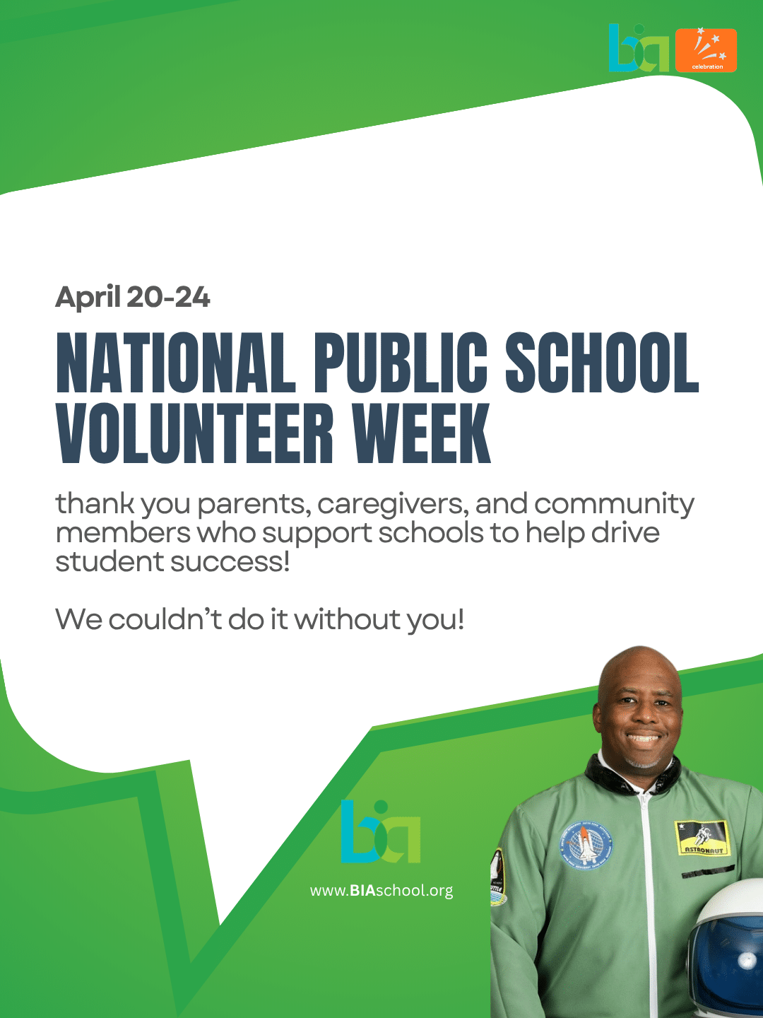 National Public School Volunteer Week April 20 - April 24 BIA Charter School 186 Hunter Street Northwest, Norcross National Public School Volunteer Week, April 20-24